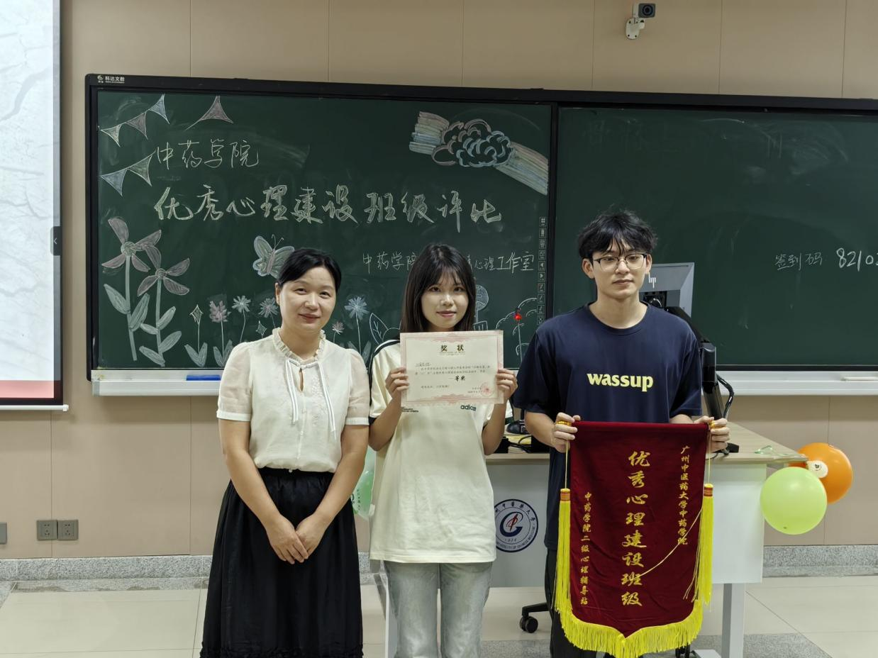 活动开始,王建刚副书记致辞,阐明心理健康活动的重要性与意义,鼓励心委充分发挥作用做好班级心理建设工作。随后一轮评选中脱颖而出的十个班级依次进行展示,他们用生动的语言和丰富的图片、视频,描绘了近一年来班级心理建设的点点滴滴。有的班级分享了他们通过团队活动增强同学间的信任;有的心委讲述了如何通过心理辅导帮助同学走出困境;有的心委倾情讲述了通过帮助同学所收获的成就感与快乐,每一个故事都充满了温暖和力量,展现了各班心委们对同学们心理健康的重视以及同学们对生活的热爱。各班展示结束后,石丹丹老师进行了精彩的点评,赞扬了各班级在心理建设上的创新和努力,指明心理健康教育的重要性,并鼓励各班心委发挥干部模范作用,关注和提升自身的心理素质,营造良好的班级氛围。经评选,本次获得优秀心理建设班级评比一等奖的班级为2022级药学三班;获得二等奖的班级为2023级临床药学班2021级中药创新班;获得三等奖的班级为2022级药学一班2021级药学一班和2021级药学四班。最后,嘉宾分别为获奖班级颁奖并合影留念,本次评比大会圆满结束。